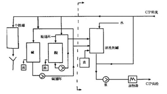清洗劑重復使用的CIP清洗系統(tǒng)示意圖(2)