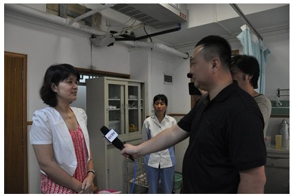 正在醫(yī)院進行采訪的中央電視臺記者獲知完達山為五胞胎家庭解決寶寶們?nèi)甑目诩Z,現(xiàn)場采訪了王榮霞。