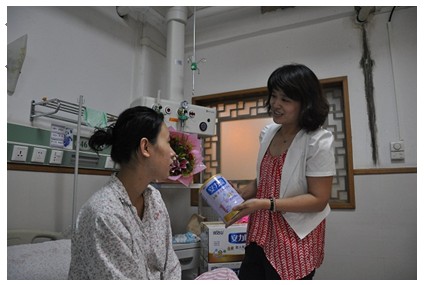 記者問及“完達山乳業(yè)自己如何看待這次捐助活動”時,王榮霞說,“完達山一直提倡母乳喂養(yǎng),但是,再健康的母親也不可能有足夠的奶水同時哺育幾個孩子,所以,當我們得知這個家庭需要幫助的時候,很自然就伸出了援手。這是我們的愛心,當然,這份愛心源自我們對自己產(chǎn)品品質(zhì)的信心。我們?yōu)閷殞毺峁┑氖峭赀_山更好的奶粉‘安力聰’,同時,我們還會安排專業(yè)人員為這個家庭提供專業(yè)的育兒指導,幫助他們科學地喂養(yǎng)寶寶。”她接著說,“授人以魚不如授人以漁。我們還可以為他提供造血型的幫助——幫著他創(chuàng)業(yè),如果他們愿意,完達山可以授權(quán)他加盟完達山世紀貝貝孕嬰店”。