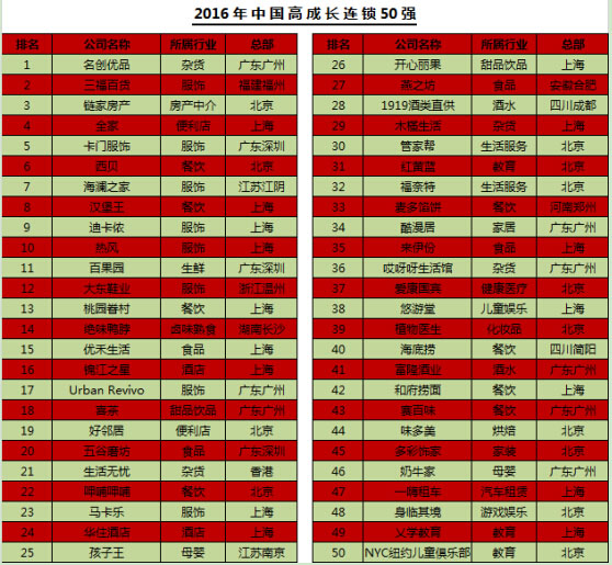 Entrepreneur’s Franchise 500? 1978年在美國由Entrepreneur首次舉辦,至今已舉辦39屆,是全球連鎖行業(yè)投資參考權(quán)威。2008年創(chuàng)業(yè)邦將Entrepreneur’s Franchise 500? 獨家引入中國,至今已成功舉辦8屆,旨在發(fā)現(xiàn)大中華地區(qū)更具良好成長潛力的特許加盟連鎖企業(yè)。2015年11月,創(chuàng)業(yè)邦投資開店推出新版網(wǎng)站——開店邦。開店邦延續(xù)創(chuàng)業(yè)邦投資開店的優(yōu)良基因,致力于“讓天下沒有難開的門店”,通過平臺完善的生態(tài)鏈和綜合性服務(wù)能力,助力中國優(yōu)秀連鎖企業(yè)的高成長,打造更多消費域的明星企業(yè)和行業(yè)標(biāo)桿。