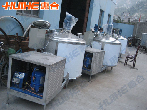 Vertical cooling milk pot is mainly composed of stainless steel tank body, stirrer, washing machine, cooling unit and electric control boxes.