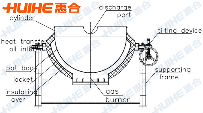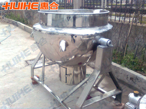 Tilting jacketed kettle made of acid and heat-resisting stainless steel 304, equipped with a pressure gauge and relief valve, electric cabinet. It is widely applied in food processing such as candy, medicine, dairy, alcohol, cake, sweetmeat, beverage, can, etc.