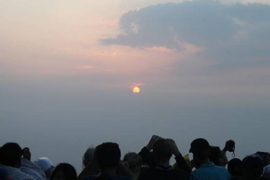 凌晨4點(diǎn)起來登上光明看日出,在很多人放棄之時(shí)太陽突然從云霧中緩緩升起,這也給我們很大的啟示:不要輕言放棄,要堅(jiān)持到底!
